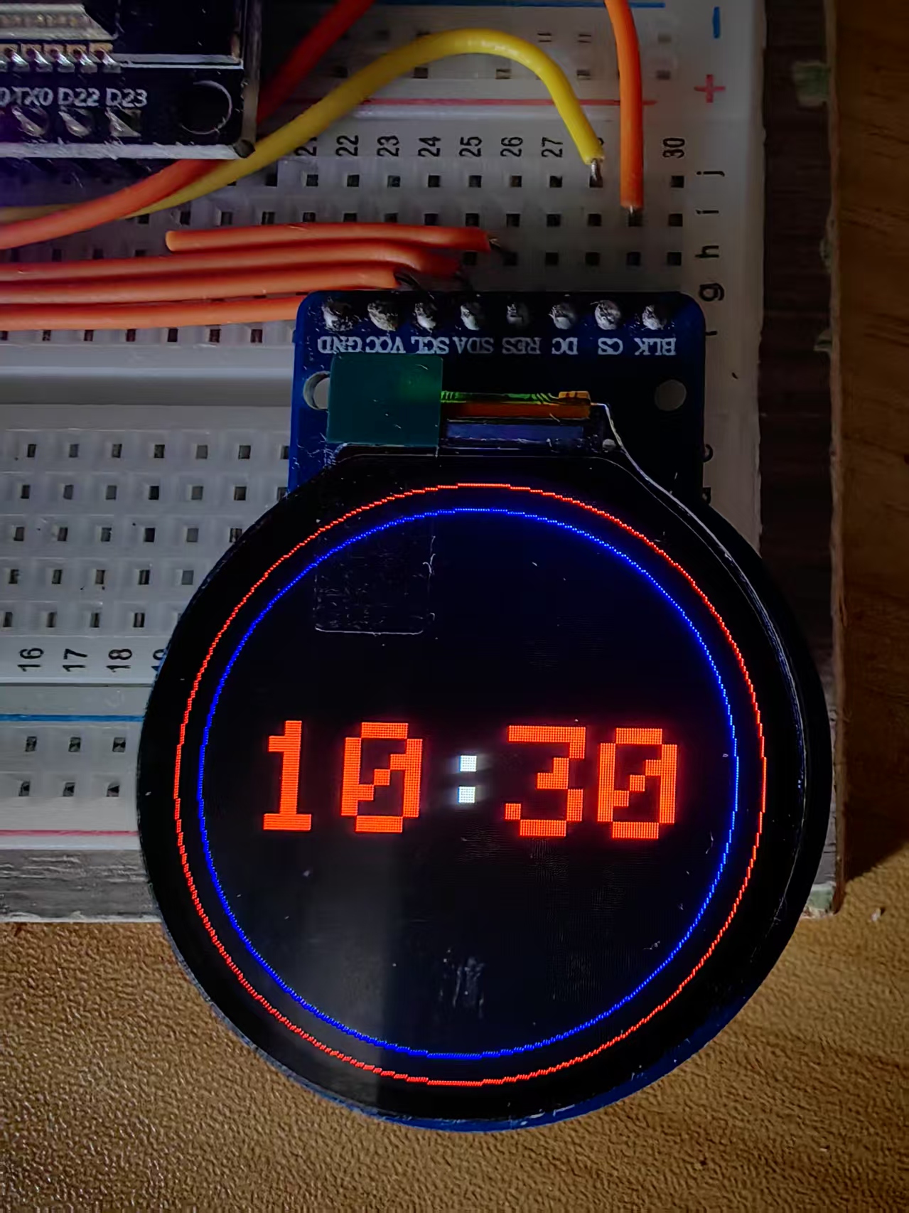项目之五十六:GC9A01园屏之给数字时钟添加红色和绿色的双框装饰