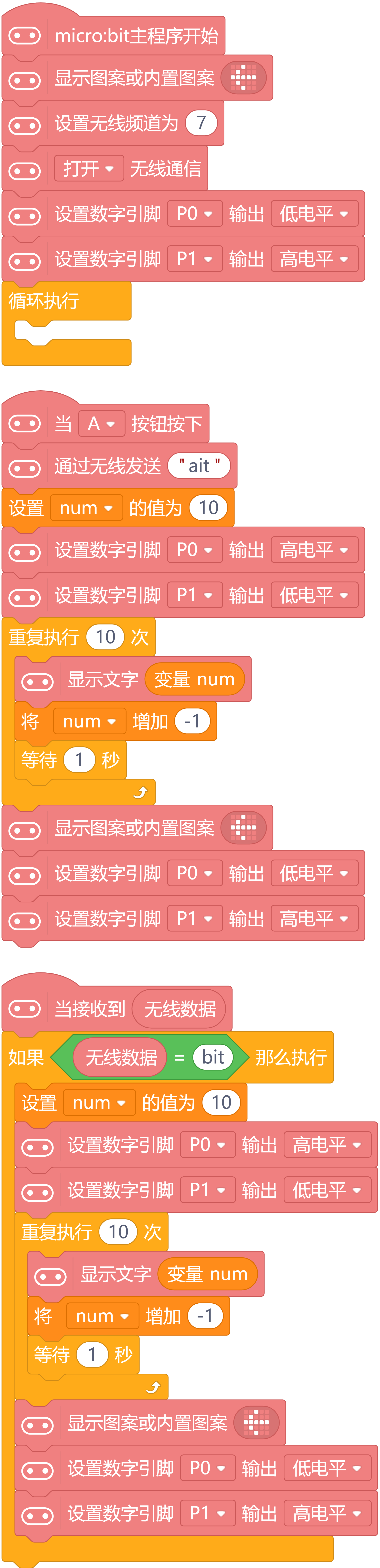 两块micro:bit通过无线通信,共同完成红绿灯控制。