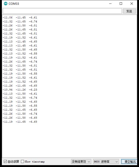这段代码让 加速度传感器不断读取 XYZ 数据,并在串口显示