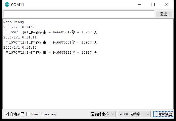 这段代码让 DS3231 RTC 模块不断读取时间,并计算 Unix 时间戳。